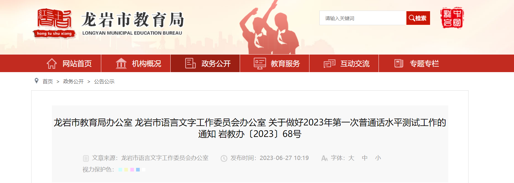 從龍巖市教育局獲悉,2023年福建龍巖第普通話報名時間及考試時間已公布,請相關(guān)人員仔細(xì)閱讀,具體詳情如下: