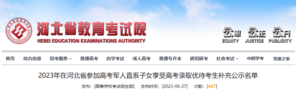 從河北省教育考試院了解到,2023年在河北省參加高考軍人直系子女享受高考錄取優(yōu)待考生補充公示名單已公布,詳細內(nèi)容如下: