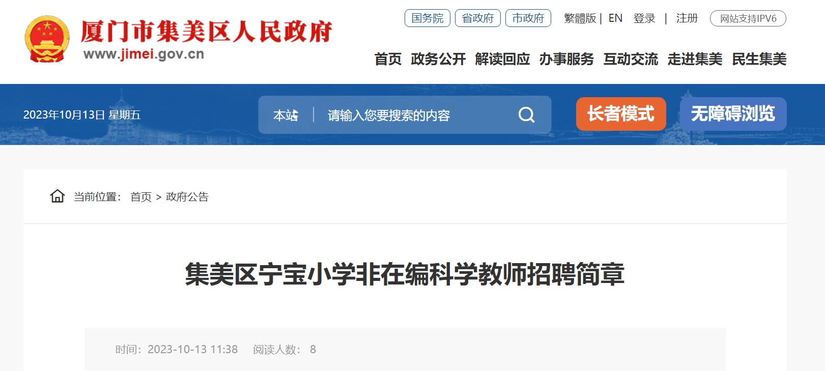 2023福建廈門集美區(qū)寧寶小學非在編科學教師招聘簡章已發(fā)布,報名時間:即日起至2023年10月20日?,F(xiàn)將招聘公告原文發(fā)布如下: