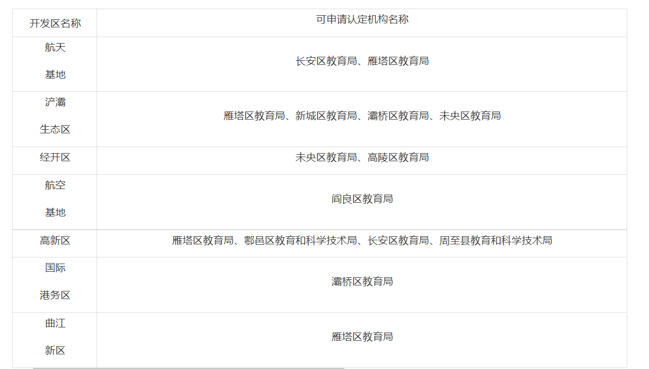 (三)戶籍在我市開發(fā)區(qū)的社會(huì)人員和持有我市開發(fā)區(qū)頒發(fā)的居住證的社會(huì)人員,依據(jù)開發(fā)區(qū)所涉及的行政區(qū)域,申請(qǐng)初中、小學(xué)、幼兒園教師資格的申請(qǐng)人可選擇向開發(fā)區(qū)涉及的區(qū)縣教育行政部門提出申請(qǐng)(具體請(qǐng)查閱區(qū)縣教育行政部門發(fā)布的認(rèn)定公告);申請(qǐng)高中、中職、中職實(shí)習(xí)指導(dǎo)教師資格的申請(qǐng)人向西安市教育行政部門提出申請(qǐng)。