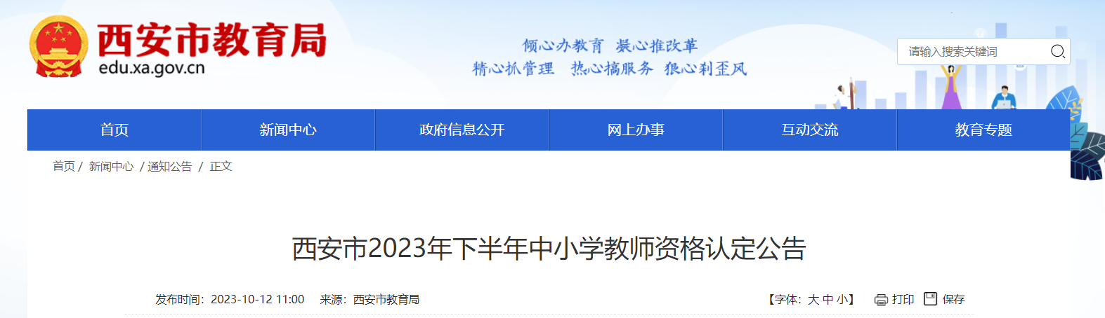 根據(jù)《中華人民共和國教師法》《教師資格條例》《<教師資格條例>實(shí)施辦法》和《陜西省教育廳辦公室關(guān)于做好2023年中小學(xué)教師資格制度實(shí)施工作有關(guān)事項(xiàng)的通知》(陜教師辦〔2023〕11號(hào))等法律法規(guī)政策規(guī)定,結(jié)合我市工作實(shí)際,現(xiàn)將西安市2023年下半年中小學(xué)教師資格認(rèn)定工作公告如下:
