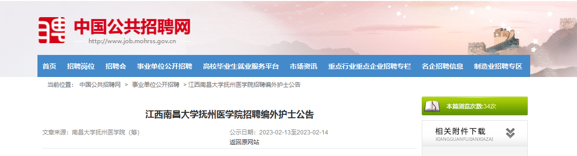 2023江西南昌大學撫州醫(yī)學院招聘編外護士,報名截止時間:2023年2月14日,現(xiàn)將招聘公告原文發(fā)布如下: