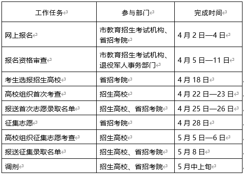 2023年山東濟(jì)南專升本網(wǎng)上報(bào)名(含繳費(fèi))時(shí)間為4月2日-4日,每天9∶00—17∶00。具體工作時(shí)間安排見下表。