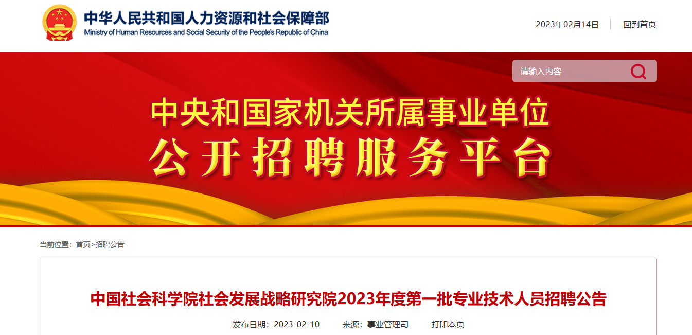 2023年北京中國社會(huì)科學(xué)院社會(huì)發(fā)展戰(zhàn)略研究院第一批專業(yè)技術(shù)人員招聘?,F(xiàn)將公告原文發(fā)布如下:
