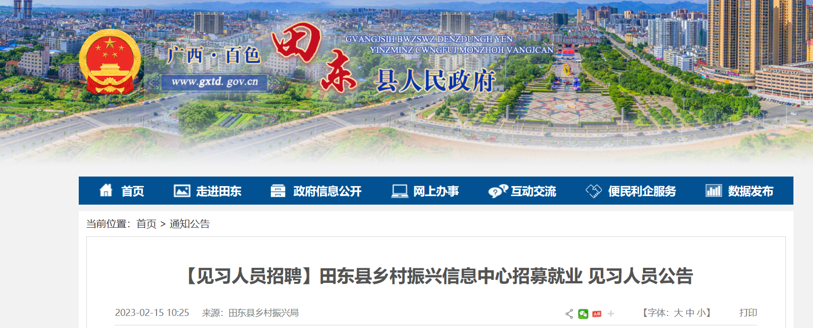 2023年廣西百色市田東縣鄉(xiāng)村振興信息中心招募就業(yè)見習(xí)人員。報名時間:2023年2月15日至2月28日?,F(xiàn)將公告原文發(fā)布如下: