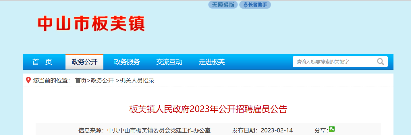 2023年廣東省中山市板芙鎮(zhèn)人民政府招聘雇員4人。報名時間:2023年2月22日至2月24日,現(xiàn)將公告原文發(fā)布如下: