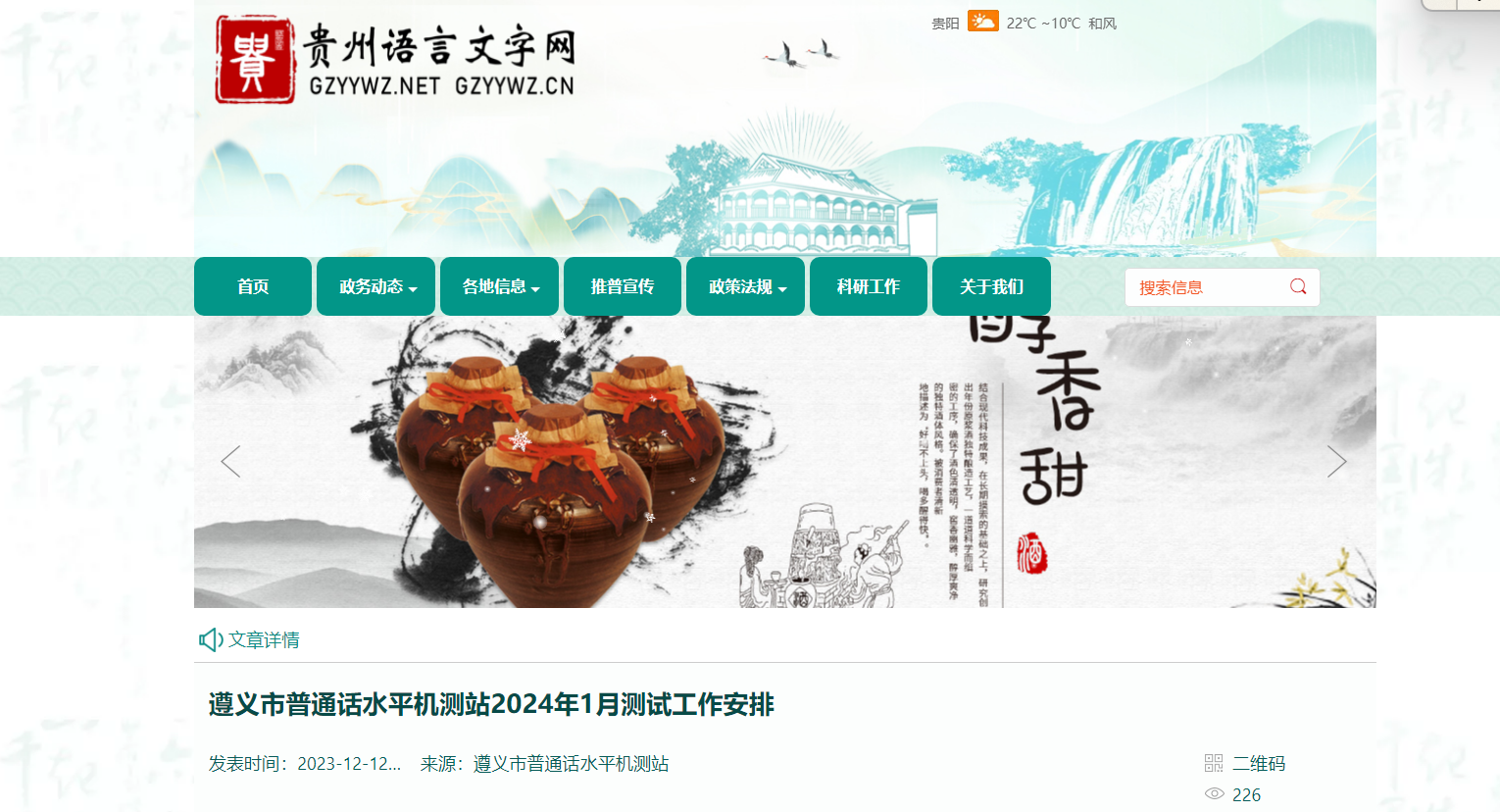 從貴州語言文字網獲悉,2024年1月貴州遵義市普通話報名時間及考試時間已公布,報名時間1月8日起,考試時間1月13日-14日,具體詳情如下:
