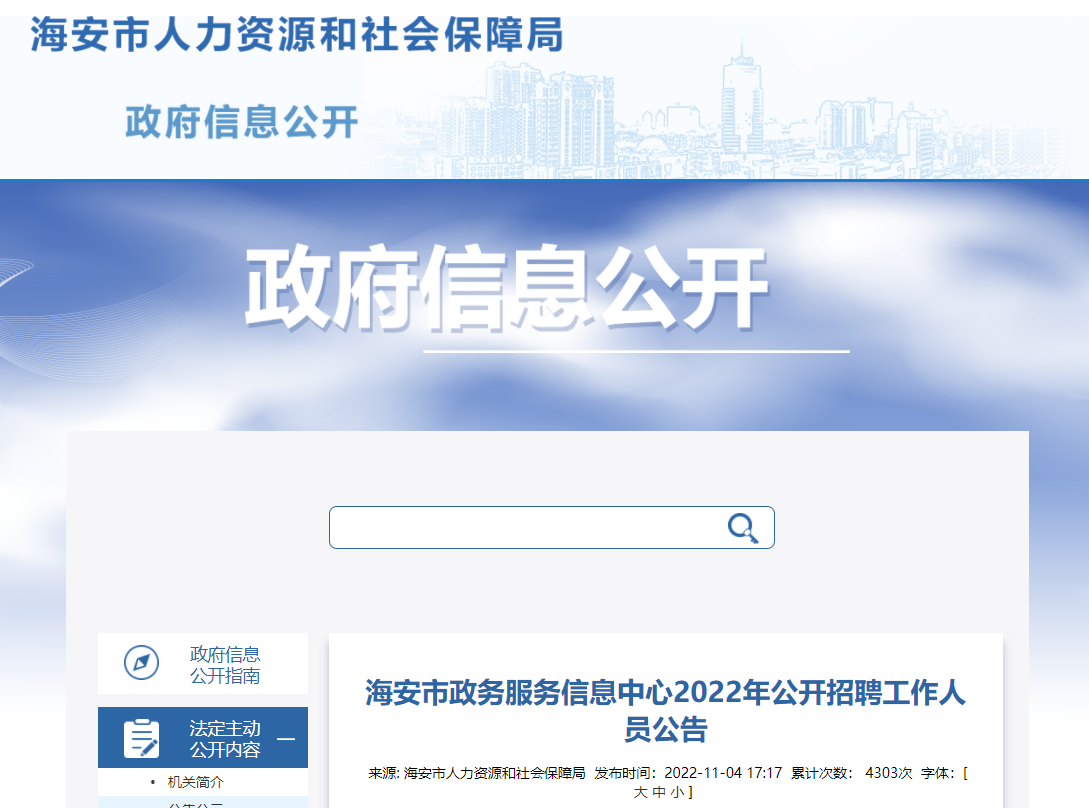 原文標題:海安市政務(wù)服務(wù)信息中心2022年公開招聘工作人員公告