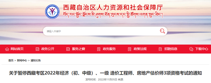 原文標(biāo)題:關(guān)于暫停西藏考區(qū)2022年經(jīng)濟(jì)(初、中級(jí))、一級(jí)造價(jià)工程師、房地產(chǎn)估價(jià)師3項(xiàng)資格考試的通知