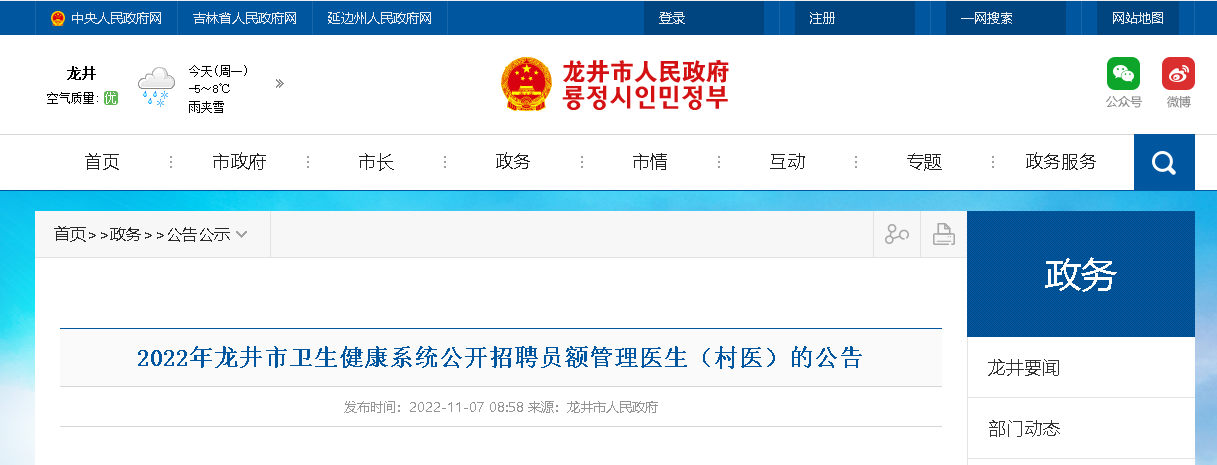 2022年吉林延邊龍井市衛(wèi)生健康系統(tǒng)公開招聘9人,報名時間:2022年11月16日-17日,上午09:00—11:00,下午14:00—16:00,現(xiàn)將招聘公告原文發(fā)布如下: