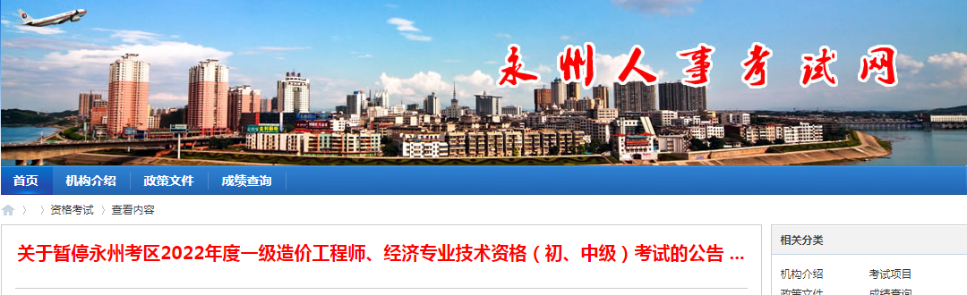 原文標題:關于暫停永州考區(qū)2022年度一級造價工程師、經(jīng)濟專業(yè)技術資格(初、中級)考試的公告