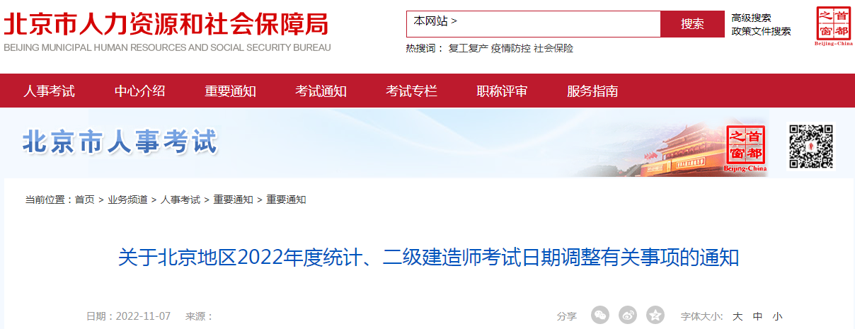 原文標(biāo)題:關(guān)于北京地區(qū)2022年度統(tǒng)計(jì)、二級建造師考試日期調(diào)整有關(guān)事項(xiàng)的通知