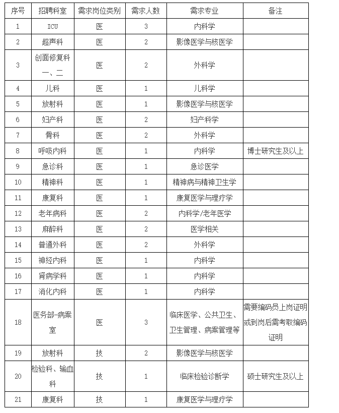 因醫(yī)院快速發(fā)展需要,現(xiàn)公開招聘醫(yī)務(wù)人員若干名,具體條件如下: