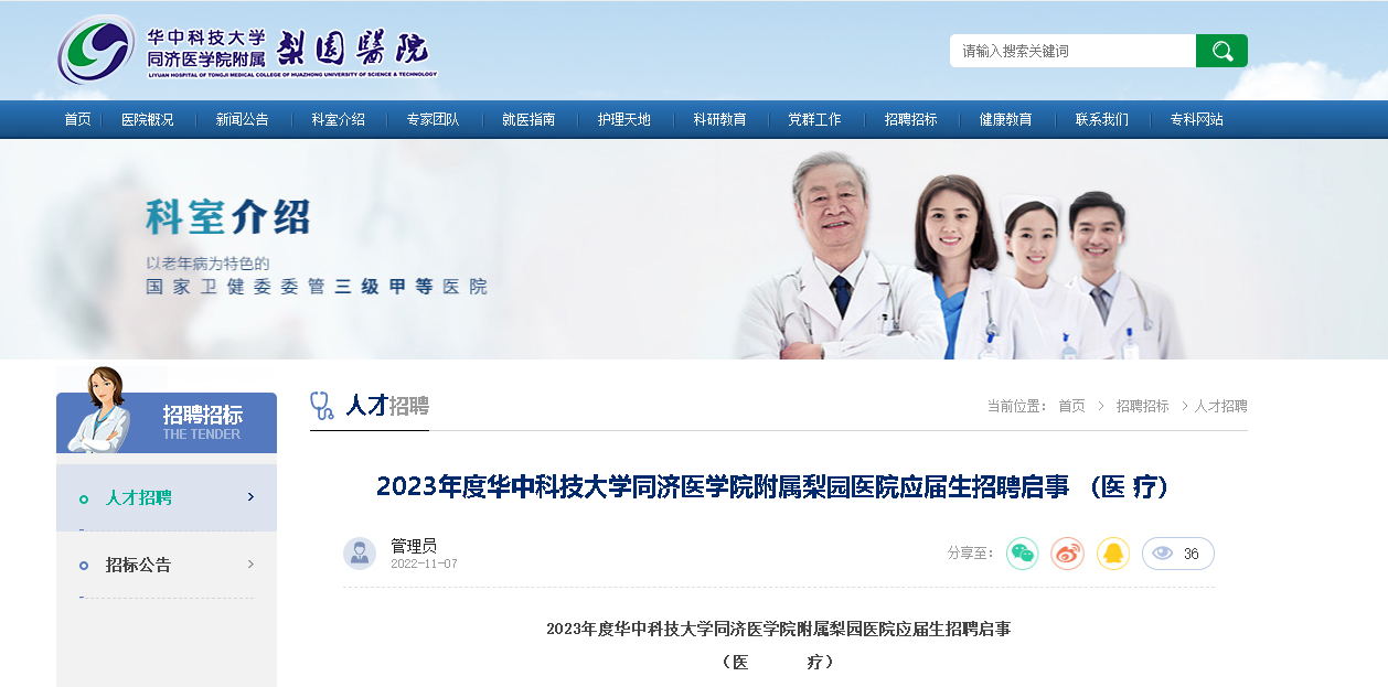 原文標題:2023年度華中科技大學同濟醫(yī)學院附屬梨園醫(yī)院應屆生招聘啟事(醫(yī)療)