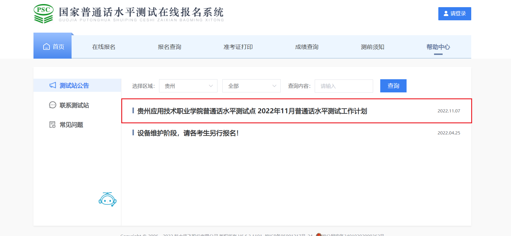從國家普通話水平測試在線報名系統(tǒng)獲悉,2022年11月貴州應(yīng)用技術(shù)職業(yè)學(xué)院普通話報名時間及考試時間已公布,請相關(guān)人員仔細(xì)閱讀,具體詳情如下: