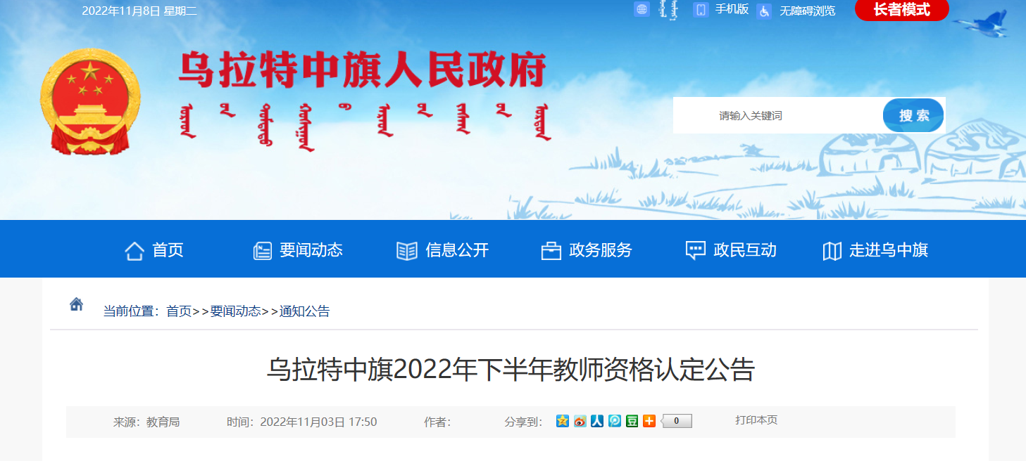 原文標題:烏拉特中旗2022年下半年教師資格認定公告
