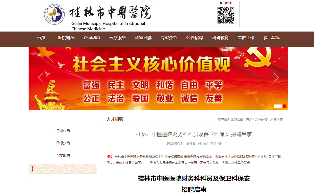 原文標(biāo)題:桂林市中醫(yī)醫(yī)院財(cái)務(wù)科科員及保衛(wèi)科保安招聘啟事