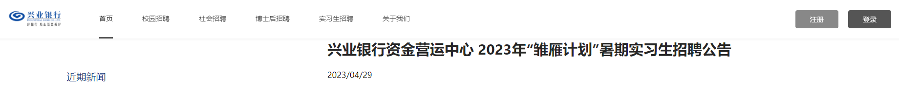 原文標(biāo)題:興業(yè)銀行資金營(yíng)運(yùn)中心 2023年“雛雁計(jì)劃”暑期實(shí)習(xí)生招聘公告