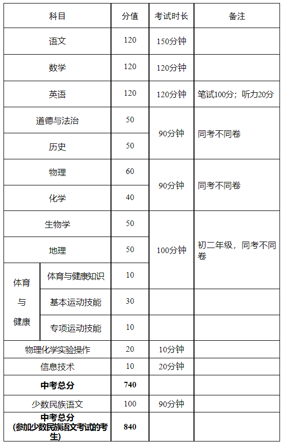 (一)學(xué)業(yè)水平考試:具體科目、分值、時(shí)長及考試時(shí)間等詳見附件。