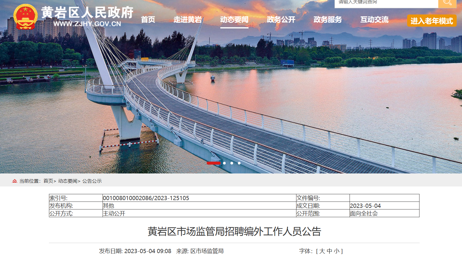 原文標題:黃巖區(qū)市場監(jiān)管局招聘編外工作人員公告
