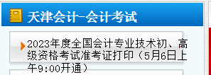 全國(guó)會(huì)計(jì)資格評(píng)價(jià)網(wǎng):2023年天津初級(jí)會(huì)計(jì)準(zhǔn)考證打印入口已開(kāi)通