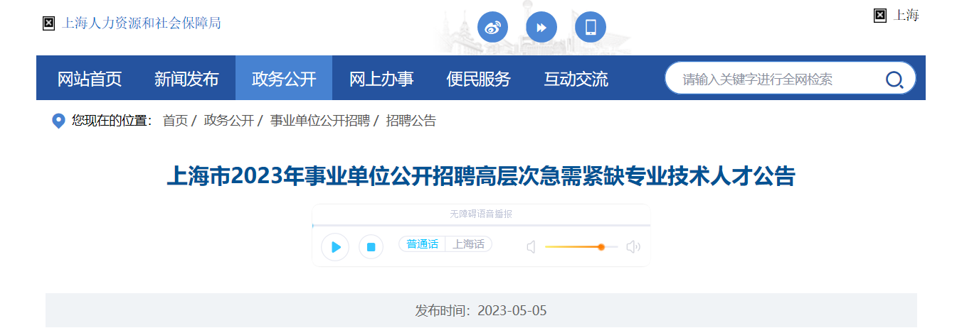 2023年上海市事業(yè)單位招聘高層次急需緊缺專業(yè)技術(shù)人才。報(bào)名時(shí)間即日起至2023年12月31日,現(xiàn)將公告原文發(fā)布如下: