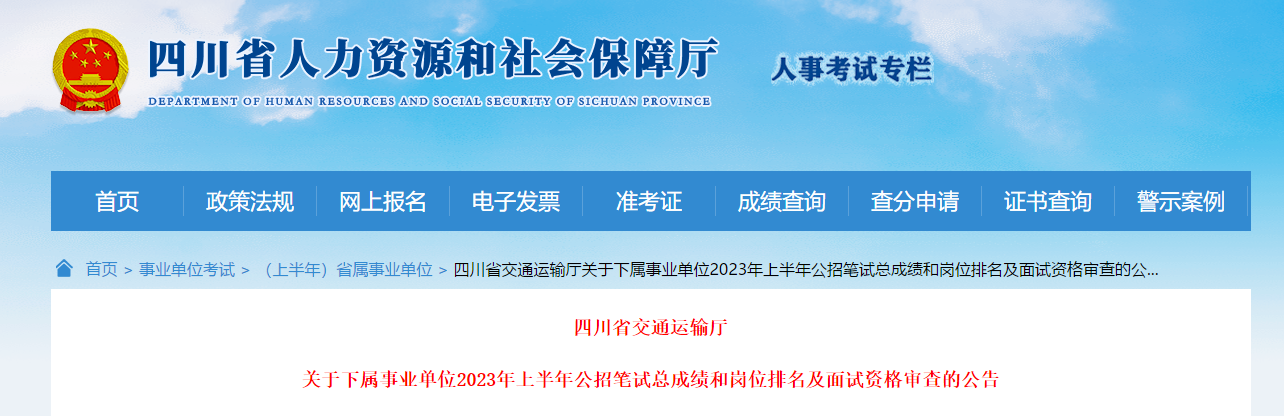 原文標(biāo)題:四川省交通運(yùn)輸廳關(guān)于下屬事業(yè)單位2023年上半年公招筆試總成績(jī)和崗位排名及面試資格審查的公告