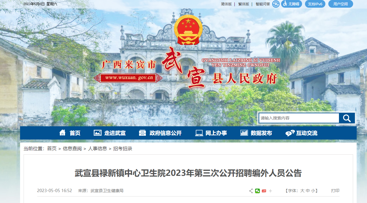 原文標題:武宣縣祿新鎮(zhèn)中心衛(wèi)生院2023年第三次公開招聘編外人員公告
