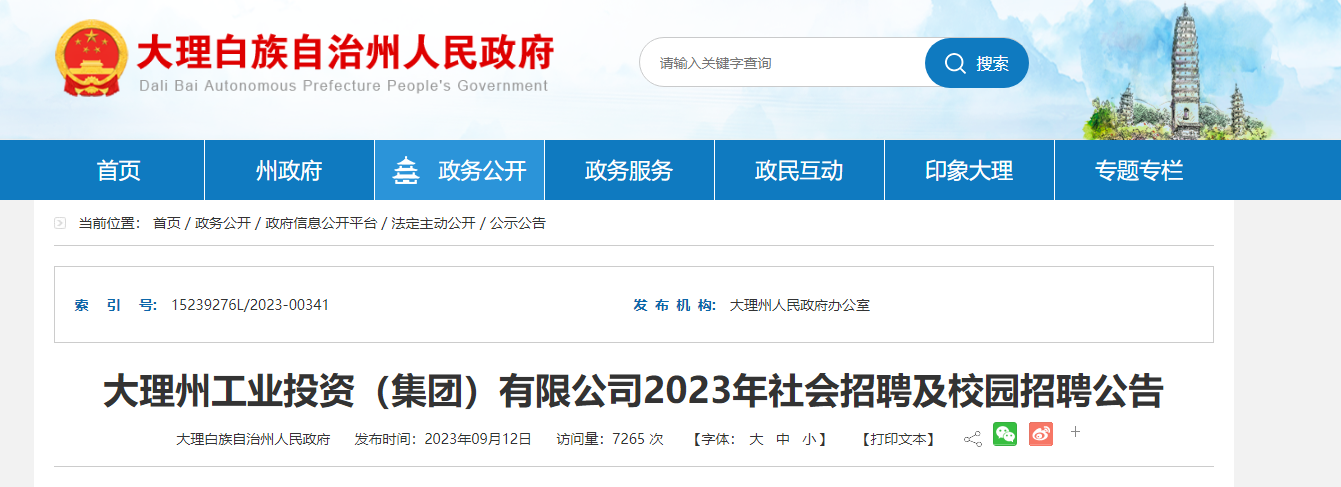 招聘信息發(fā)布于“大理州人民政府網(wǎng)站”、“獵聘網(wǎng)”等相關(guān)媒體。
