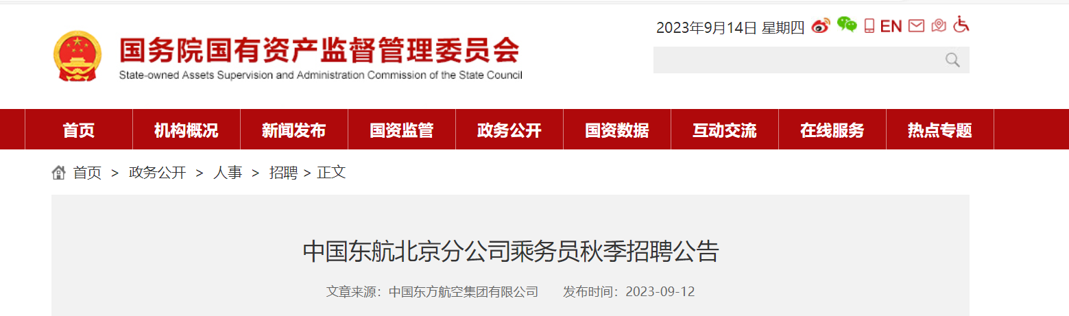 2023年中國東航北京分公司乘務(wù)員秋季招聘工作人員。報名截止時間:2023/9/20,12:00:00?,F(xiàn)將公告原文發(fā)布如下: