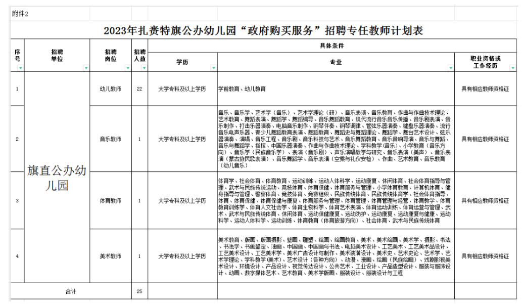 2.《2023年扎賚特旗公辦幼兒園招聘專任教師計(jì)劃表》