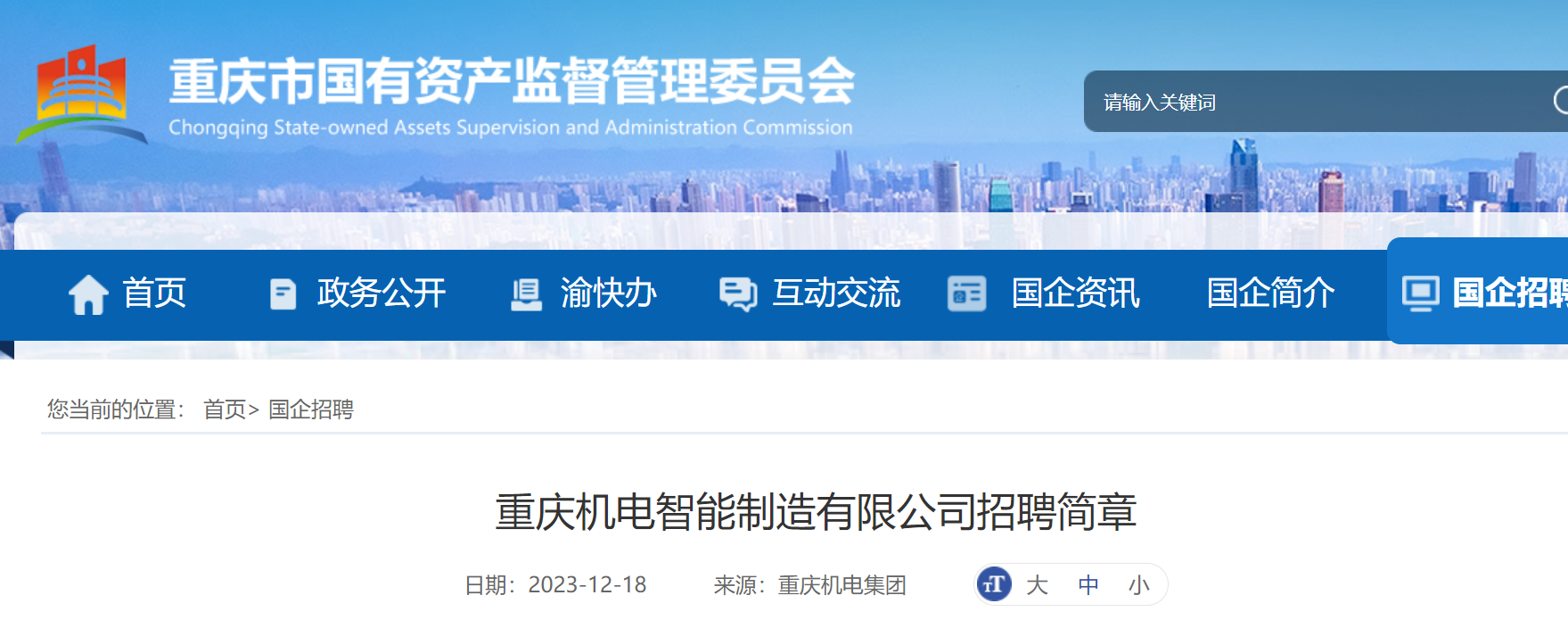 2023年重慶機(jī)電智能制造有限公司招聘簡章已發(fā)布,聯(lián)系地址:重慶市南岸區(qū)機(jī)電一支路6號。現(xiàn)將招聘公告原文發(fā)布如下: