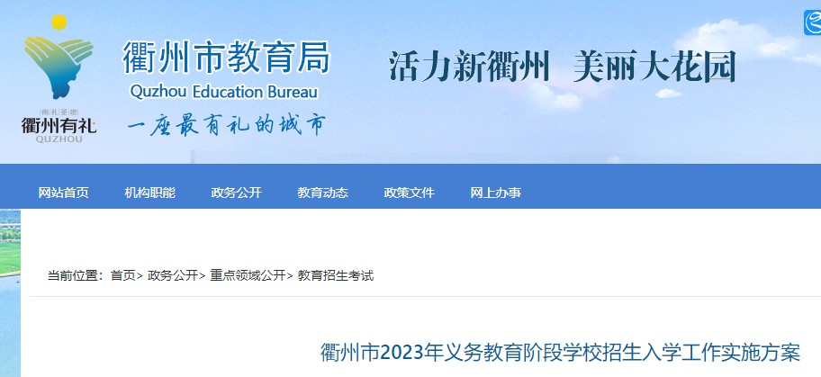 中考頻道從衢州市教育局了解到,浙江衢州2023年義務教育階段學校招生入學工作實施方案已公布,具體如下: