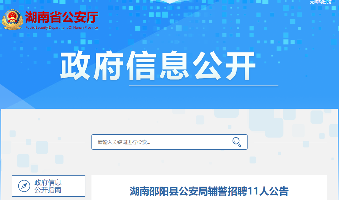 從湖南省公安廳了解到,2023年湖南邵陽市邵陽縣公安局輔警招聘11人,相關事宜詳情如下: