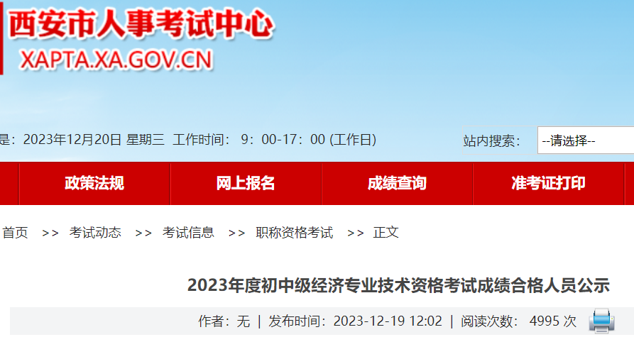 小編根據(jù)西安市人事考試中心發(fā)布”2023年度初中級經(jīng)濟專業(yè)技術(shù)資格考試成績合格人員公示“得知,西安2023年初中級經(jīng)濟師考試成績合格人員公示,共1816人,公示期為2023年12月19日至2023年12月25日。