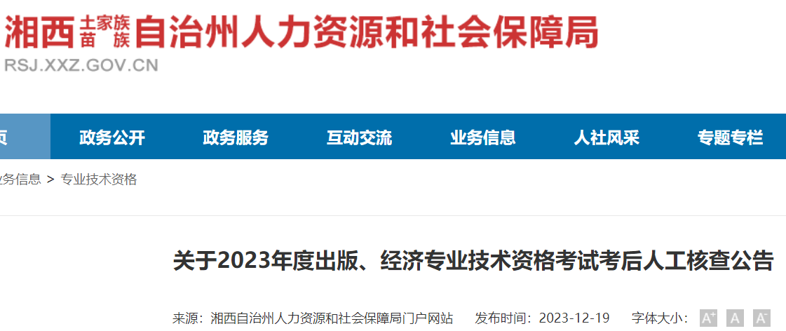 小編根據(jù)湘西自治州人力資源和社會保障局發(fā)布“關于2023年度出版、經(jīng)濟專業(yè)技術資格考試考后人工核查公告”得知,湖南湘西州2023年初中級經(jīng)濟師考后人工核查時間為2023年12月26日。