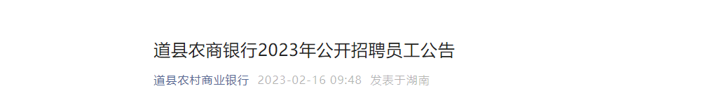 原文標(biāo)題:道縣農(nóng)商銀行2023年公開招聘員工公告