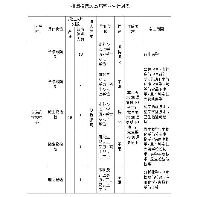 原文標(biāo)題:義烏市疾控中心2023年應(yīng)屆畢業(yè)生校園招聘公告