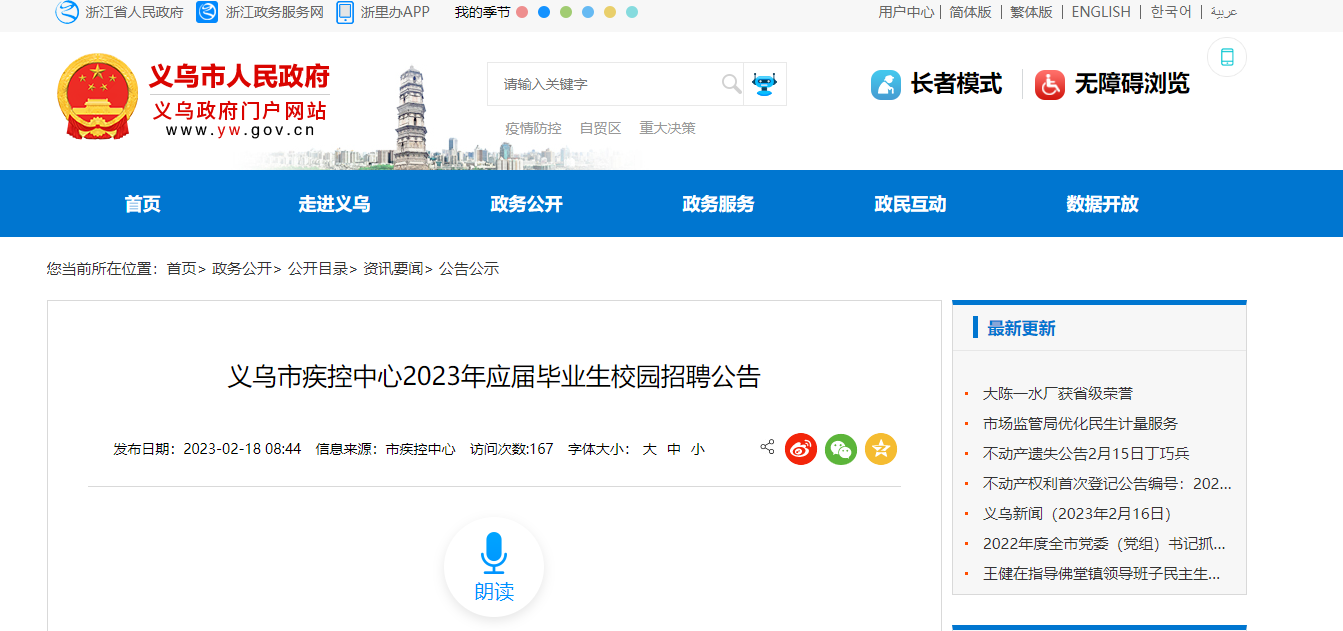 2023浙江金華市義烏市疾控中心應(yīng)屆畢業(yè)生校園招聘19人,報(bào)名時(shí)間:自發(fā)布此公告之日起,現(xiàn)將招聘公告原文發(fā)布如下: