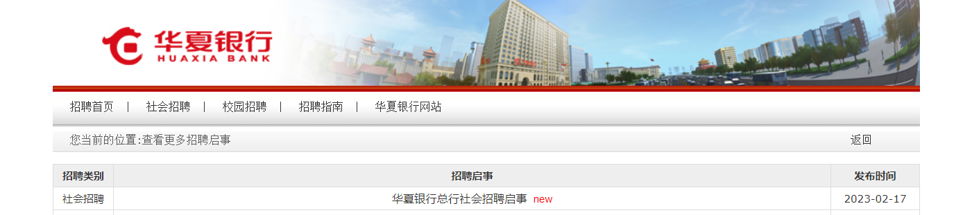 2023年華夏銀行北京總行招聘啟事已發(fā)布,報(bào)名時(shí)間:2023年5月31日截止,現(xiàn)將招聘公告發(fā)布如下: