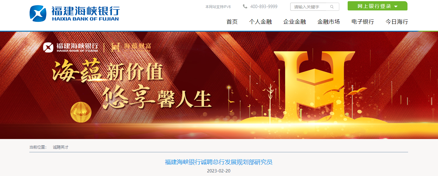 2023年福建海峽銀行總行發(fā)展規(guī)劃部研究員招聘公告已發(fā)布,報(bào)名時(shí)間:2023年3月10日截止,現(xiàn)將招聘公告發(fā)布如下: