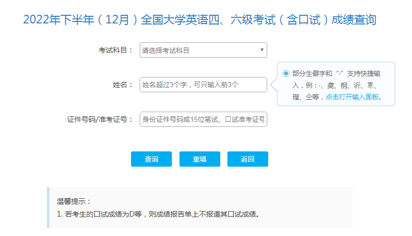 點(diǎn)擊進(jìn)入>>>湖南2022下半年英語六級成績查詢?nèi)肟凇疽验_通】