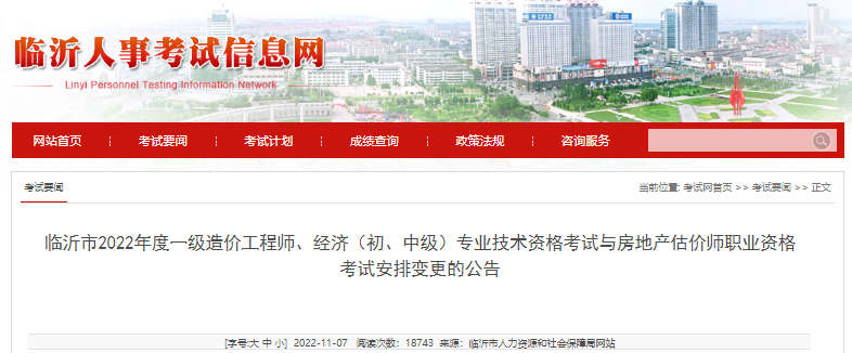 原文標(biāo)題:臨沂市2022年度一級造價工程師、經(jīng)濟(jì)(初、中級)專業(yè)技術(shù)資格考試與房地產(chǎn)估價師職業(yè)資格考試安排變更的公告