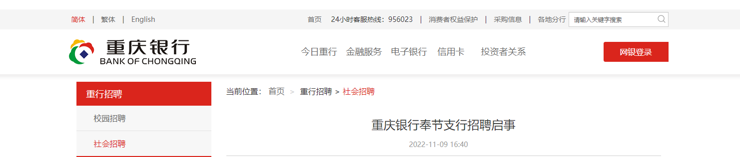 2022重慶銀行奉節(jié)支行招聘啟事已發(fā)布,簡歷接收截止時間:2022年12月31日,現(xiàn)將招聘公告發(fā)布如下: