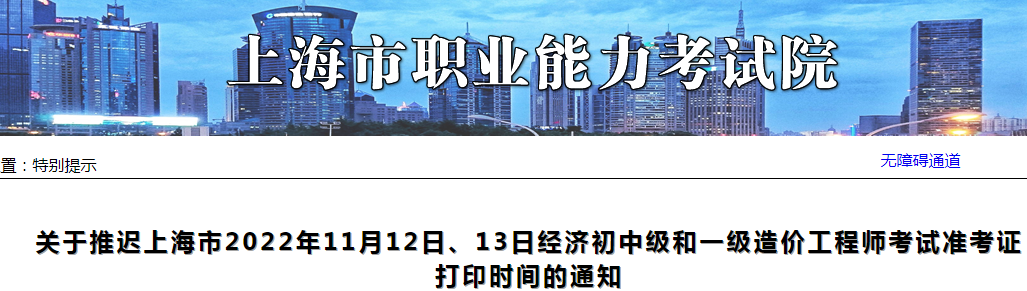 原文標題:關于推遲上海市2022年11月12日、13日經濟初中級和一級造價工程師考試準考證打印時間的通知