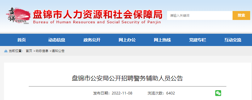 原文標(biāo)題:盤錦市公安局公開招聘警務(wù)輔助人員公告