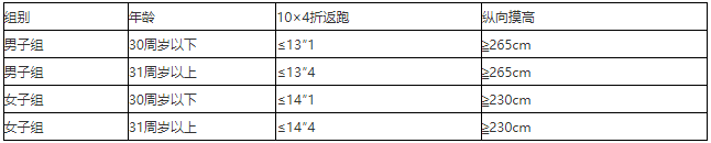 (3)體能測評的標(biāo)準(zhǔn)為: