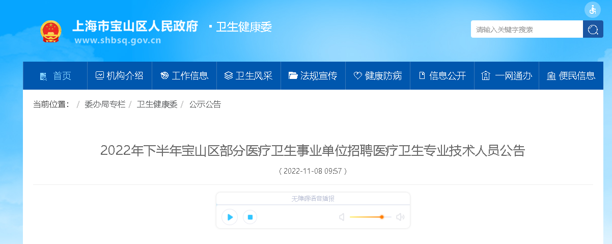 附件1:《2022年下半年寶山區(qū)部分醫(yī)療衛(wèi)生事業(yè)單位招聘醫(yī)療衛(wèi)生專業(yè)技術(shù)人員簡(jiǎn)章》