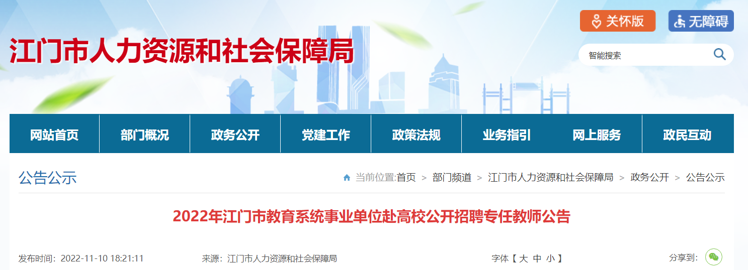 原文標(biāo)題:2022年江門(mén)市教育系統(tǒng)事業(yè)單位赴高校公開(kāi)招聘專任教師公告