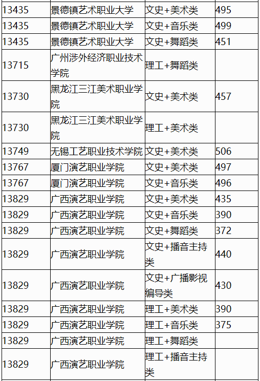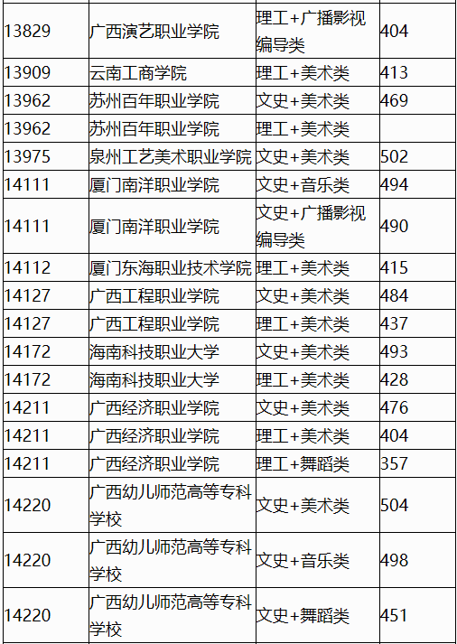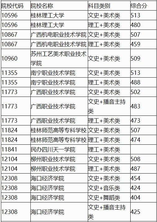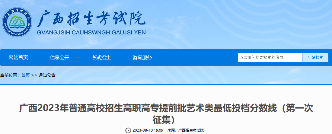 從廣西招生考試院了解到,廣西2023年普通高校招生高職高專提前批藝術類最低投檔分數(shù)線(第一次征集)已公布,詳細內容如下:
